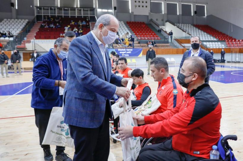 Böylesine anlamlı ve hayırlı bir etkinlikte bulunmaktan duyduğu mutluluğu ifade eden Cumhurbaşkanı Tatar; bizim yaşam felsefemizin, Türkiye Cumhuriyeti ile birlikte bu coğrafyada varlığımızı sürdürmek olduğunu söyledi. Sosyal hayatta engelli vatandaşların her türlü etkinliğine önem verdiğini belirten Cumhurbaşkanı Tatar, TSK’ya çeşitli vazifelerde bulunan sporcuların, bu güzel etkinlikte bir arada olmasının mutluluk kaynağı olduğunu dile getirerek sporculara hediyeler verdi ve her iki takıma da başarılar diledi.