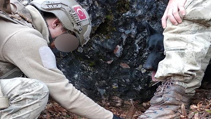 Mağaralarda özel eğitimli köpeklerle yapılan aramada çok miktarda yaşam malzemesi ele geçirildi.