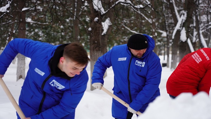 Активисты «Единой России» и МГЕР помогают расчищать от снега соцобъекты в регионах