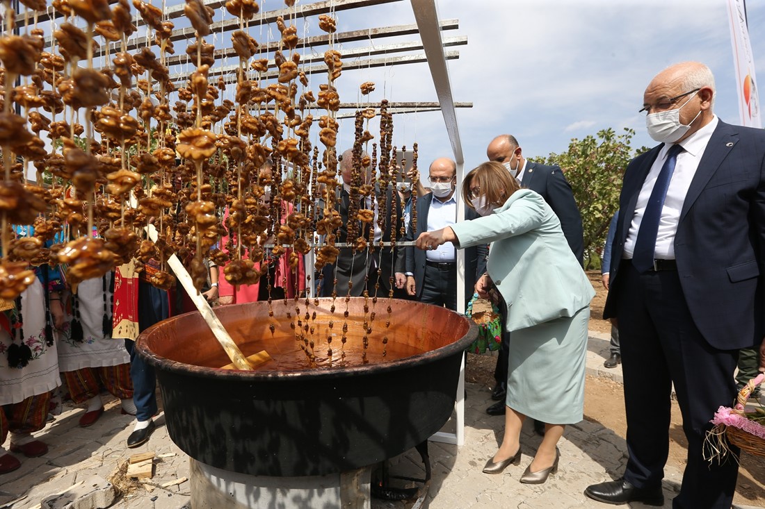 BAŞKAN ŞAHİN VE KATILIMCILAR FISTIK TOPLADI, ŞİRE YAPTI