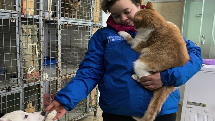Vologda bölgesinde, Birleşik Rusya aktivistleri bir hayvan barınağına yardımda bulundu